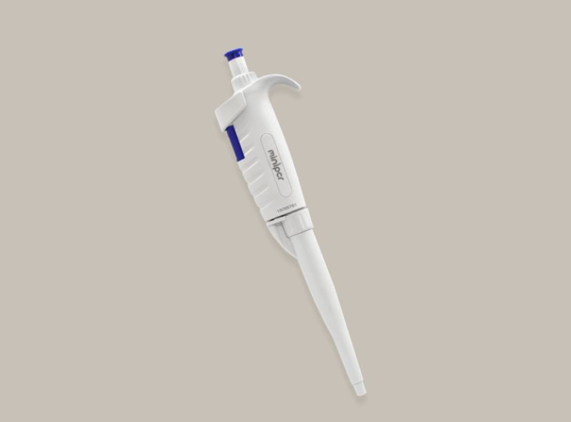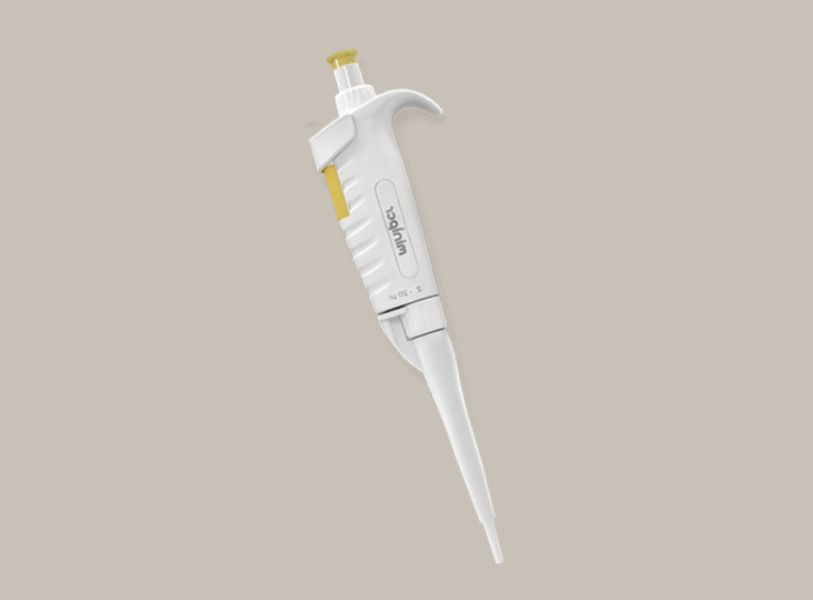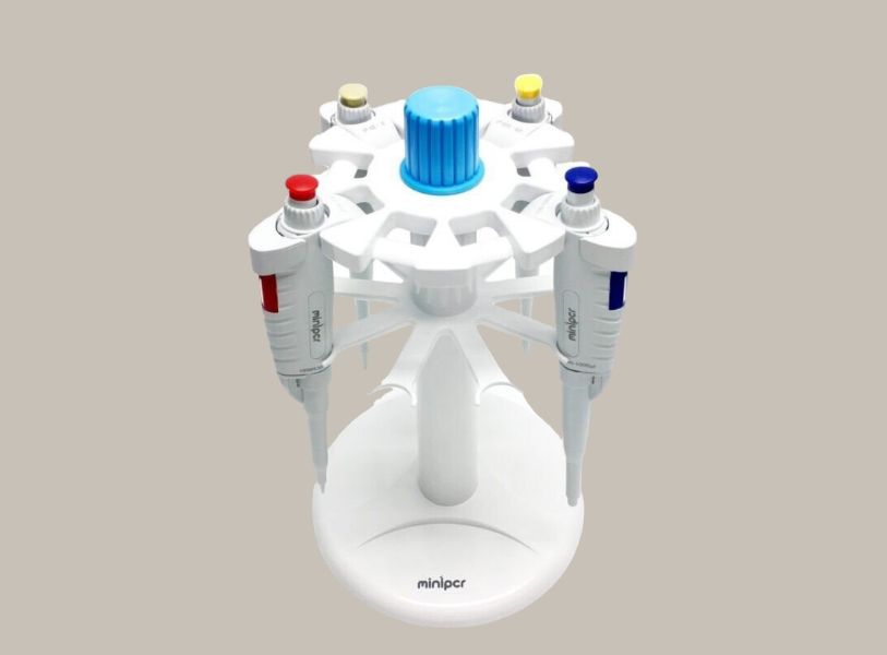 Set of four adjustable-volume micropipettes with rack: 100-1000 µl, 20-200 µl, 2-20 µl, and 0.5-10 µl (A-style)