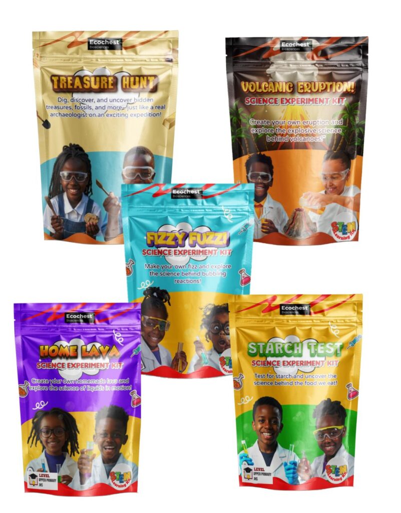 Ecochest STEM Kits bring hands-on science learning to students across Ghana. Designed to align with the national curriculum, our kits make science fun, engaging, and accessible. Each kit encourages problem-solving, creativity, and a deeper understanding of concepts like measurement, acid-base reactions, mixtures, food and nutrition, preparing students for future careers in science and technology.